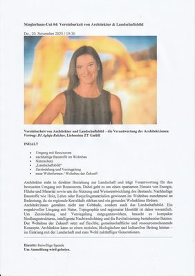 Vereinbarkeit von Architektur&Landschaftsbild - DI Aglaja Reicher im Stieglerhaus